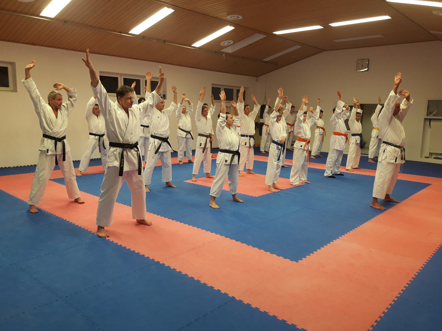 Am Montag, 14.01.2019 wurde es eng in unserm Dojo. Der Trainingraum unseres Vereins zeichnet sich dafür aus im Vergleich zu anderen Dojos sehr geräumig zu sein. An diesem Tag wurde es eng. 26 Sportler von 13 bis 70 Jahren wollten bei Klaus trainieren.