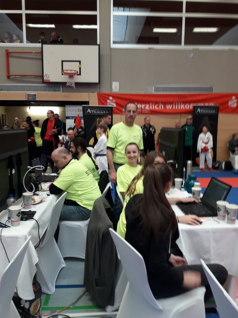 Der 6.Rhein Shiai wurde erneut unter sehr hoher Beteiligung in Mayen ausgetragen. Veranstaltet wird dieses internationale Turnier von unserem befreundeten Verein SEN5 in Mayen. Christian Grüner unser Landestrainer Kumite leitet SEN5. Beim Rhein Shiai 2018 waren mehr als 600 Starter aus ca. 20 Nationen am Start. Ganz klar, dass Christian jede helfende Hand gut brauchen kann. Laura und Gernot arbeiteten während des Turniers am Kampfrichtertisch und bedienten das IT- basierte Wertungssystem von sportdata.org